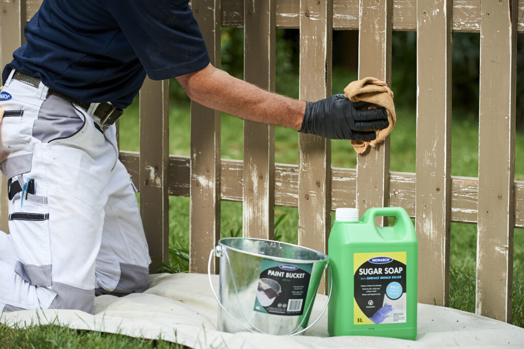 A long-lasting, professional result always starts with good preparation. Make sure to remove any flaking paint or loose debris with a Monarch Scraper to help create a smooth, clean surface before you start painting. Lightly sand rough areas or peeling paint to create a smooth surface. Clean the fence with Sugar Soap and water to remove dust, cobwebs, and grime. Allow the timber to dry completely before painting. Before you start painting, protect your grass, paths, or nearby garden beds with a drop sheet. The Monarch Leak Proof Canvas Drop Sheet is durable, reusable, and prevents paint from seeping through to the ground.